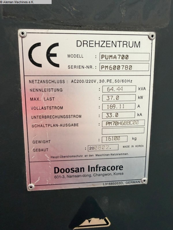 CNC Lathe DOOSAN-PUMA PUMA 700